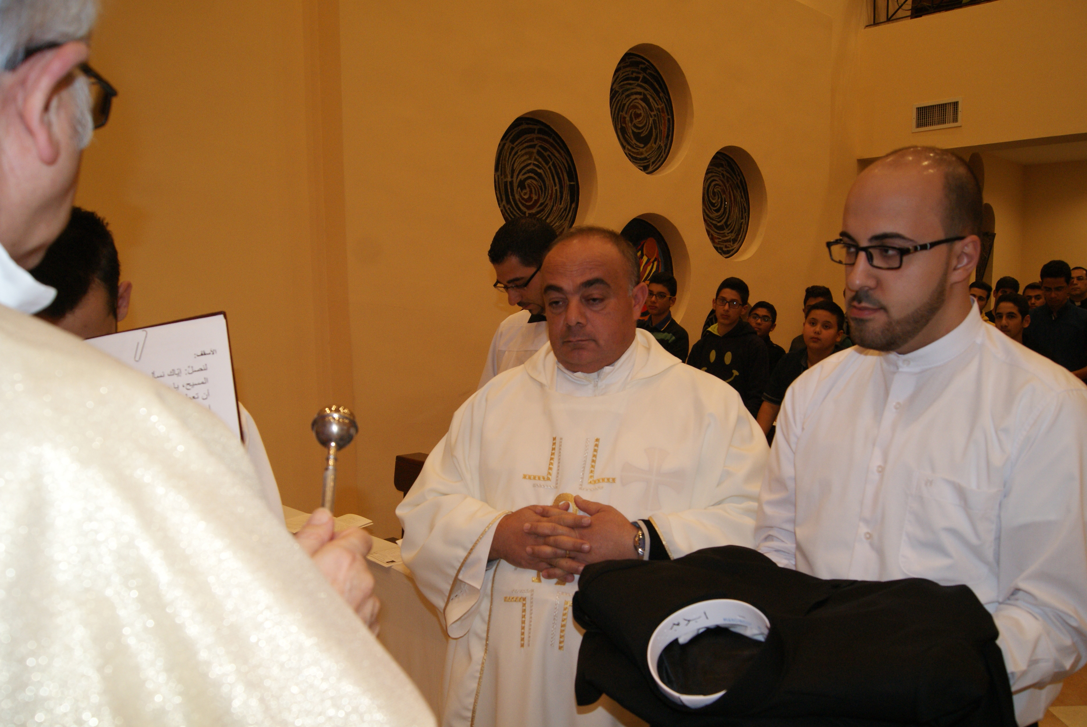 فرحة المعهد الإكليريكي… فرحة تتكرر في كل عام، وفي كل عام لها مذاق مختلف: وهذه السنة الفرحة فرحتين بإرتداء الثوب الإكليريكي للطالب وجدي سهاونة، وبرتبة قبول للرسامات المقدسة لكل من : سالم لولص ، جوزيف صويص، وصقر حجازين.