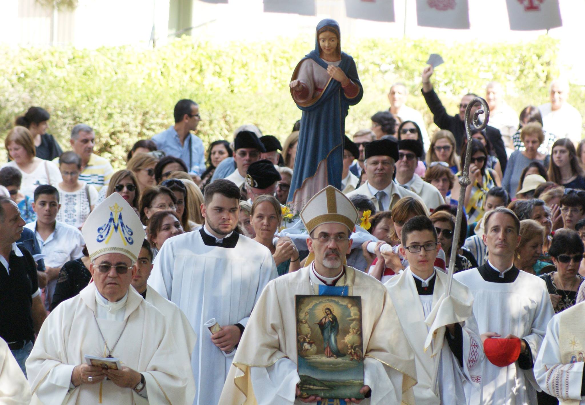 ترأّس القداس رئيس الأساقفة بييرباتيستا بيتسابالّا وسط جمع غفير من الأساقفة و الكهنة والشمامسة والرهبان والراهبات والطلاب الإكليريكيين وفرسان القبر المقدّس والمؤمنين.
