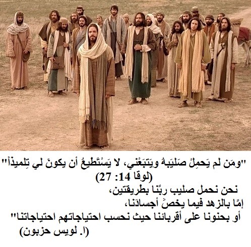 27 ومَن لم يَحمِلْ صَليَبهُ ويَتبَعْني، لا يَسْتَطيعُ أَن يكونَ لي تِلميذاً.